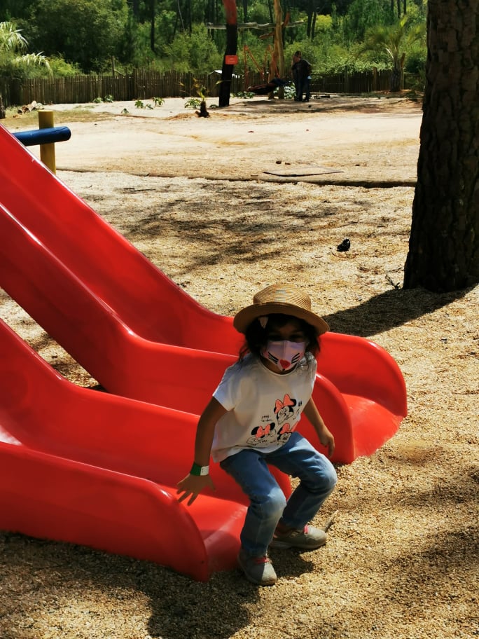 Além dos animais, têm muita brincadeira para os miúdos. A única que não está a funcionar, devido ao Covid, são os escorregas tubulares.