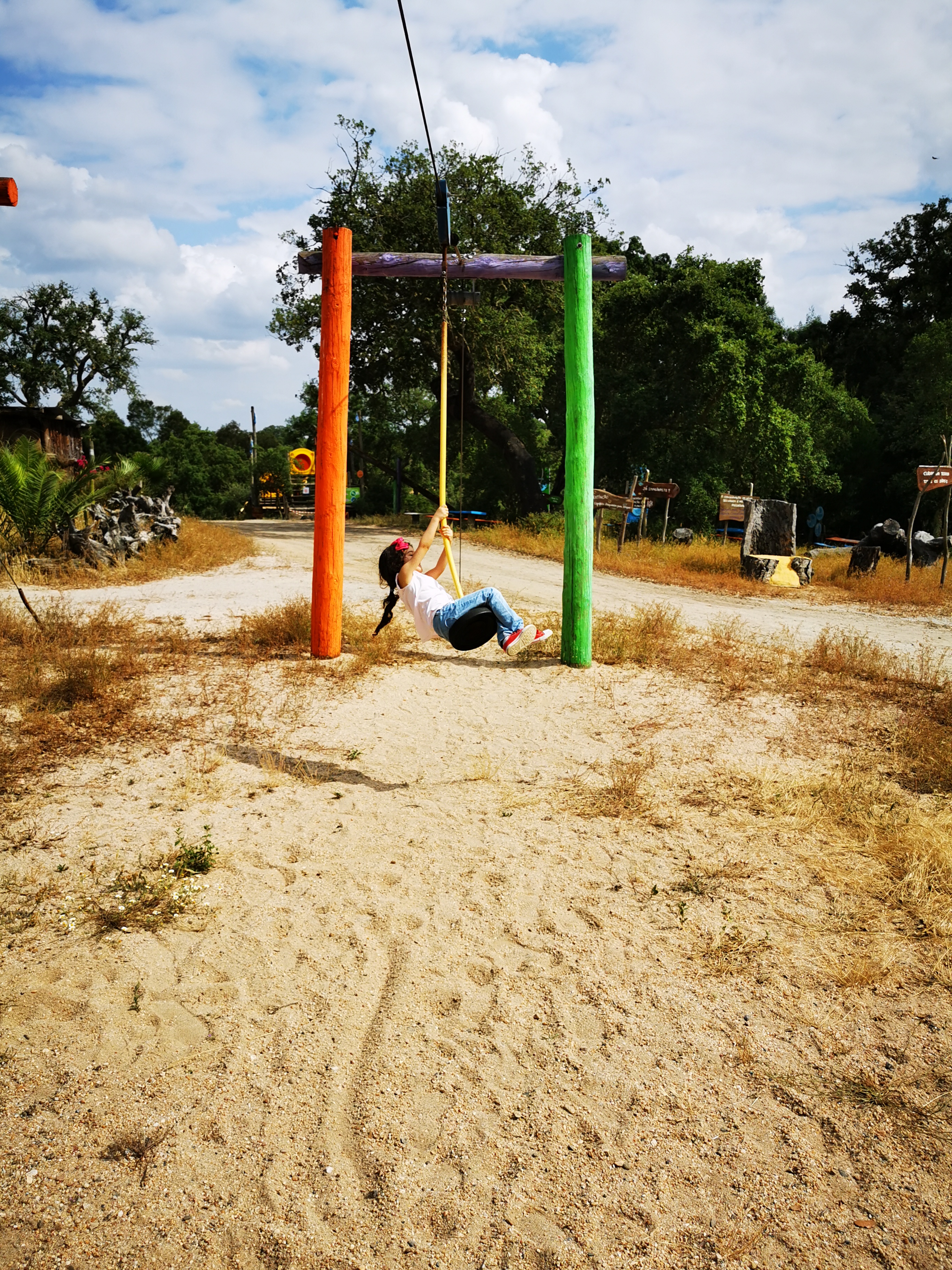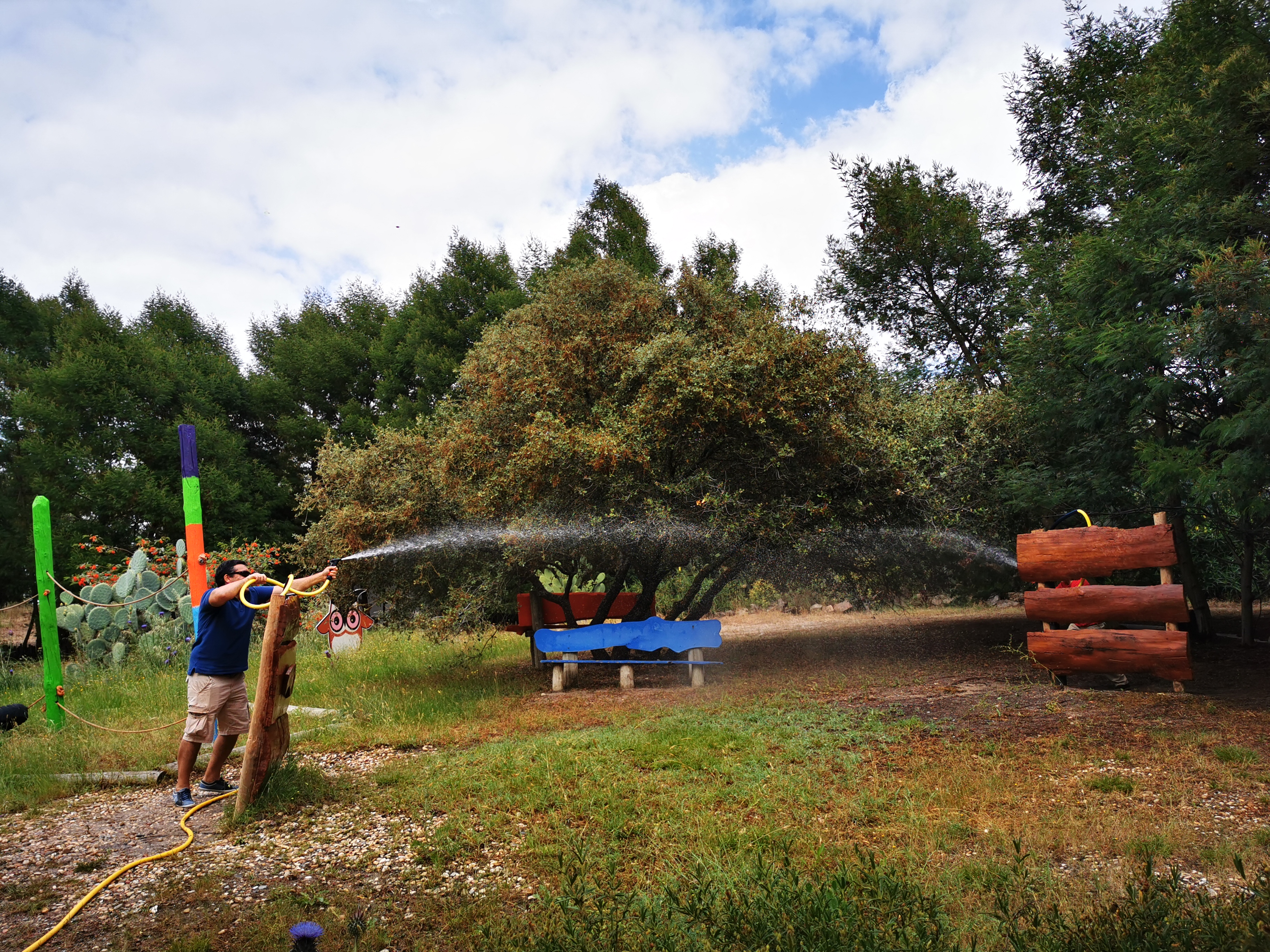 Mas sobra muita brincadeira. Há vários pontos onde se pode “molhar” os desprevenidos que lá passam por baixo, há casinhas na árvores, um labirinto, zonas para lutas de mangueiras, baloiços, um trampolim gigante, slide, etc. Dá para nos molharmos, cansarmos e, principalmente, para nos divertirmos bastante.